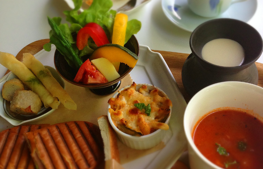 野菜ソムリエプロの店主がその季節の野菜を厳選し、より一層野菜が美味しくお召し上がりいただけるようにひと手間かけたワンプレートランチ。メインはバーニャカウダ。朝から焼きあがったパンをパニーニにしてご提供。地元の野菜をサンドし焼き上げたちょっぴりスパイシーな味はこれも不動の人気メニュー。